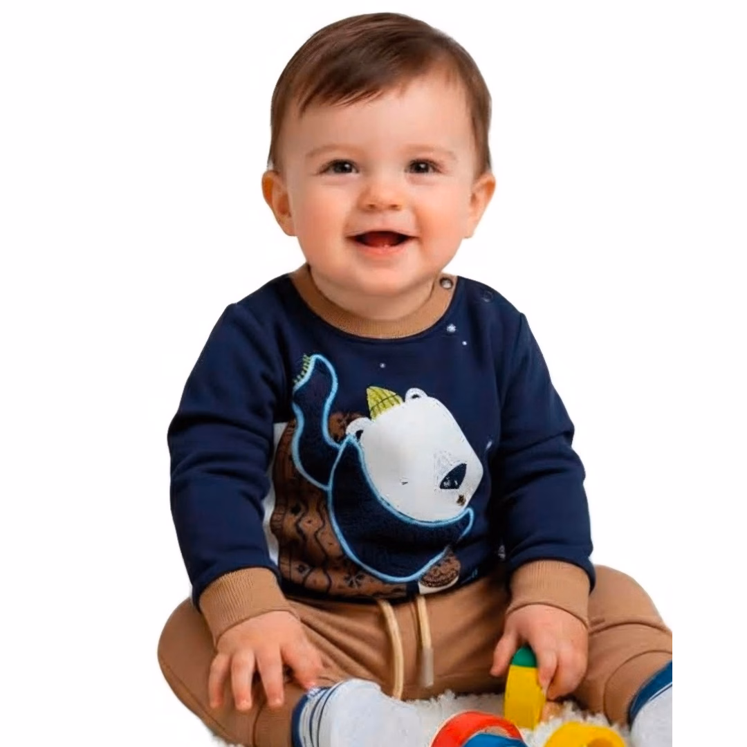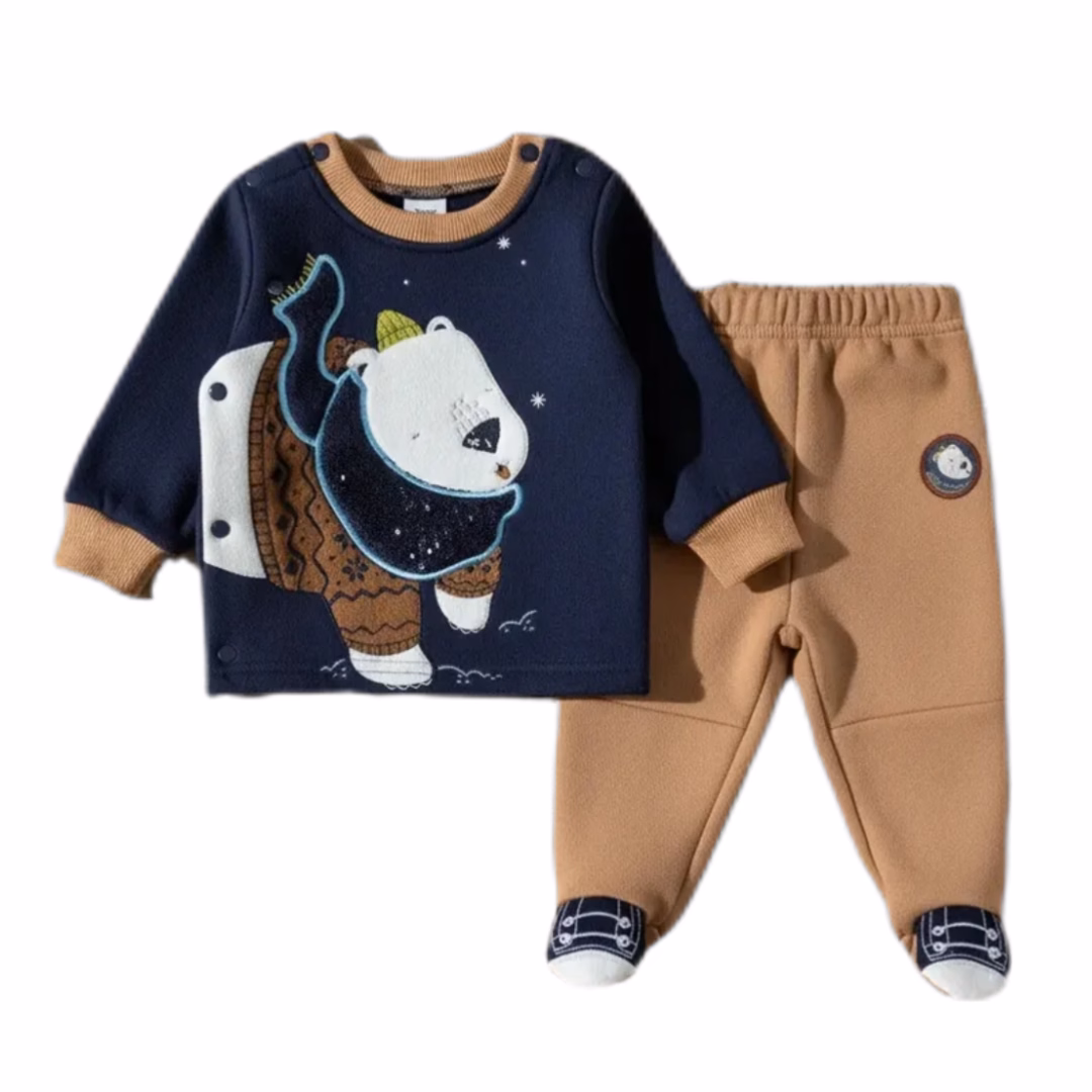Conjunto 2 pzas Afranelado con diseño de oso.
