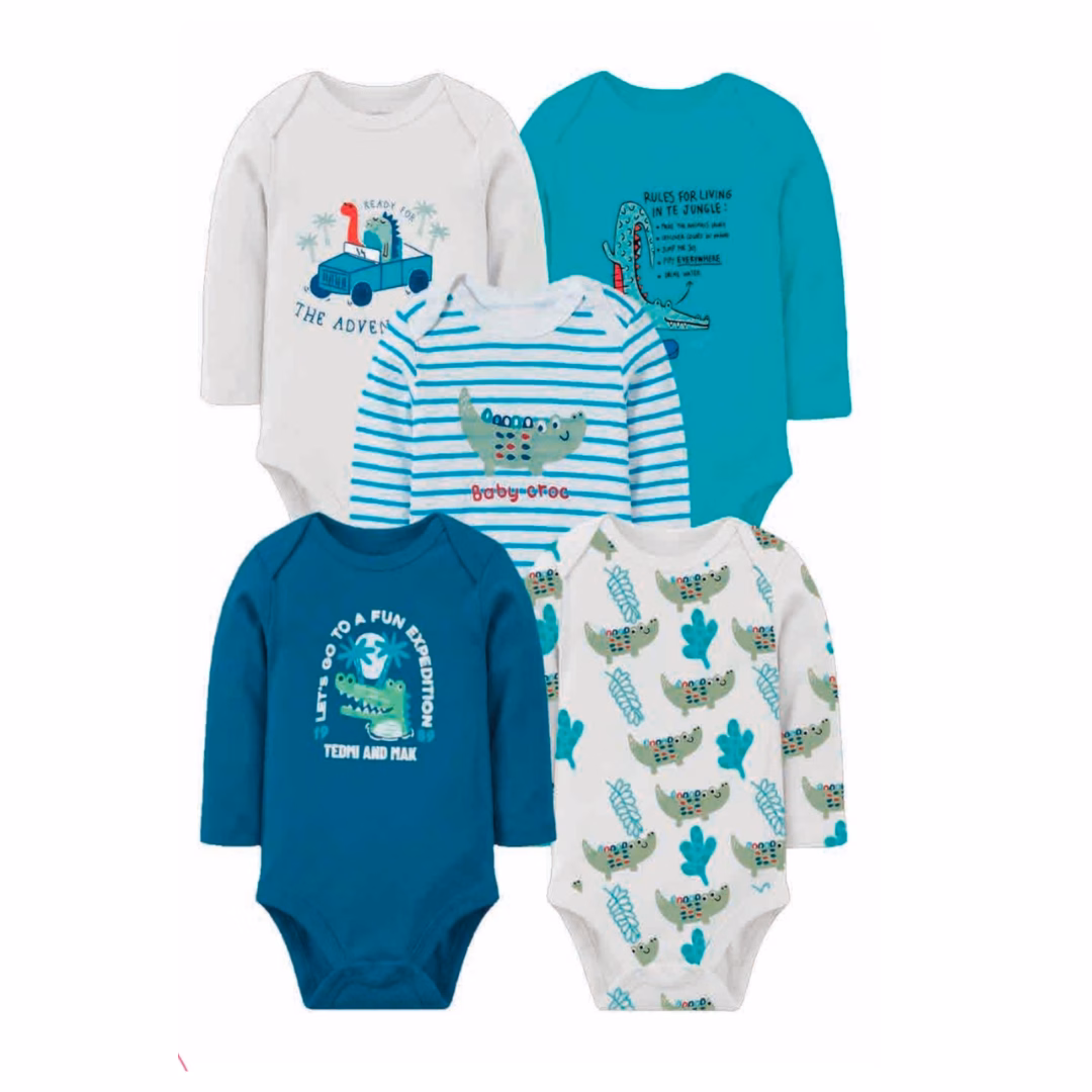 Set de 5 Bodies Manga Larga Cocodrilo